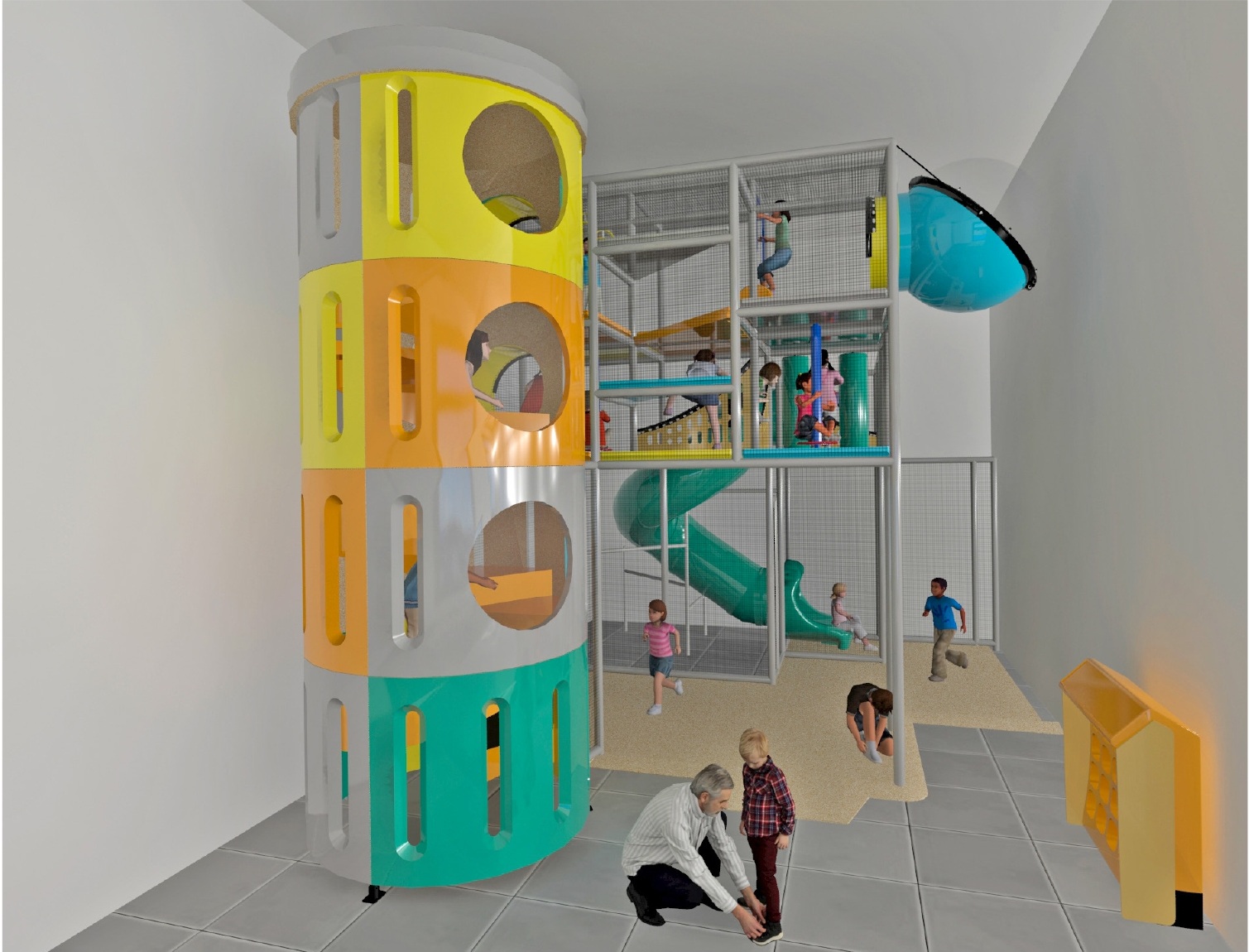St. Andrew’s Community Centre is Halifax’ new destination for families. Working closely with its builders, PCL Constructors Canada, Amusement Concepts completed their proposal for a safe & healthy play attraction. The compact playpark has 10 play events to entertain toddlers and up. It makes excellent use of the room’s floorspace and 9’6” height to entertain 34 kids in a footprint of only 8’ X 18’. We included 6 wall mounted Rock Course panels for even more activity. Its easy clean & handicap accessible design makes it a centrepiece ideal for today’s needs.